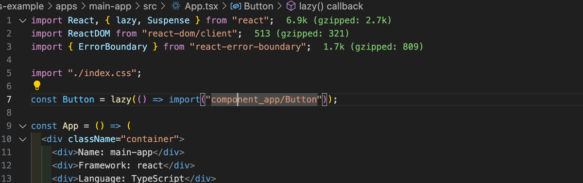 // main-app: component-app의 Button.tsx를 사용하는 container app