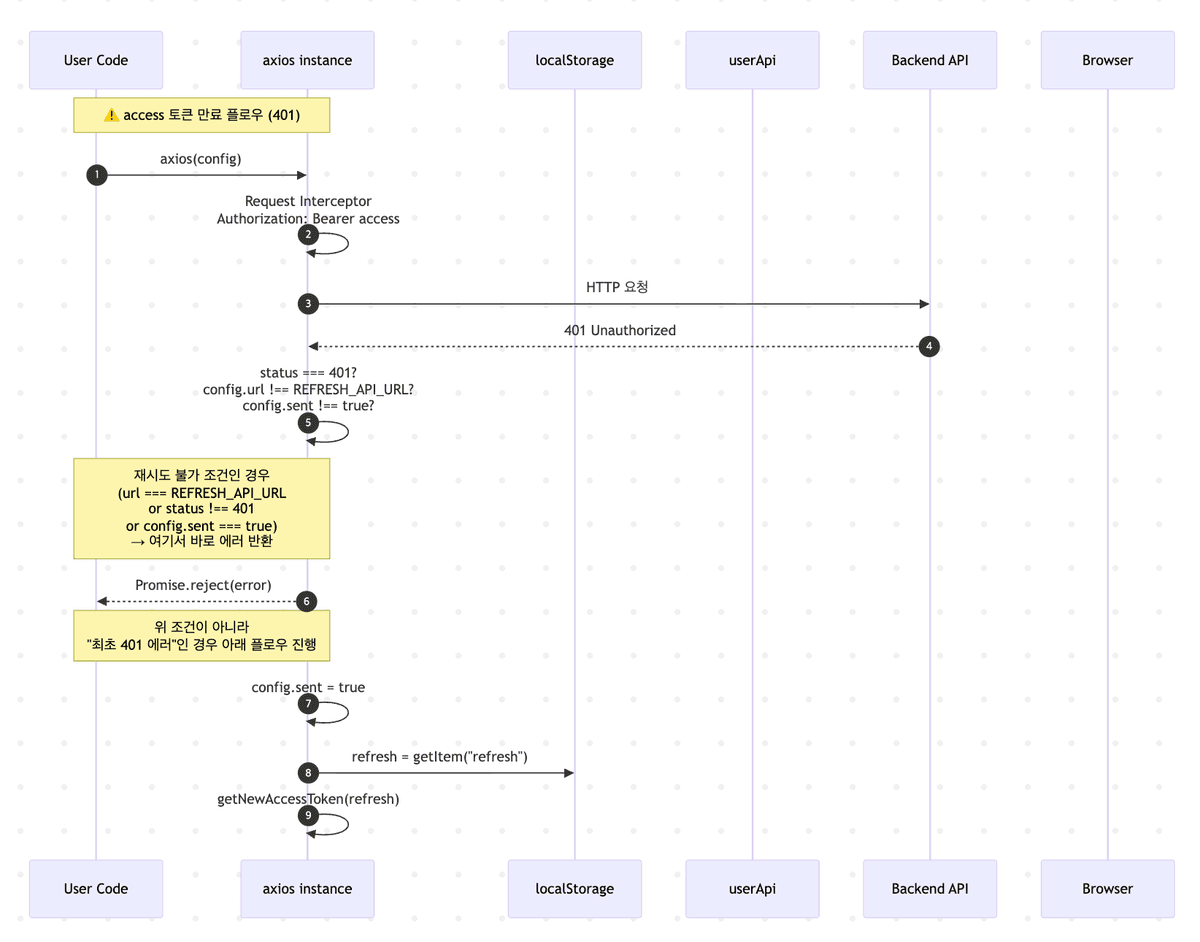 // 5번 if (config.url === REFRESH_API_URL || status !== 401 || config.sent === true) { // 6번 return Promise.reject(error); }