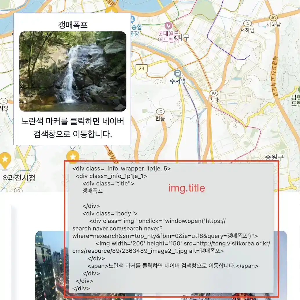위 img.title을 지우기 위해 DOM을 직접 건드는 코드가 있었는데, prevMarker를 ref로 관리한 작업 이후 img.title이 지워지지 않는 사이드 이펙트가 있었다. (prevMarker를 ref로 관리한 이유는 ui 변경과 무관한 데이터를 state로 관리하여 리렌더링을 일으키는 현상 개선이다.)